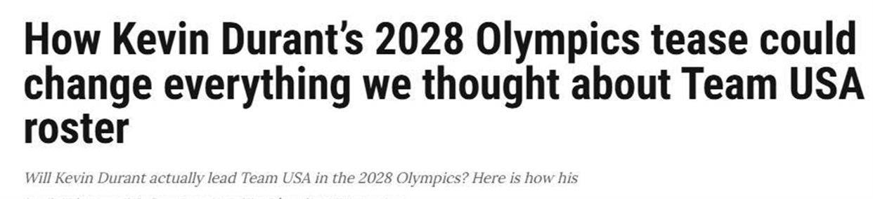 到2028年夏天,杜兰特将年满39岁,而且即将迎来40岁生日。 但他依然渴望站在奥运赛场上。 只要保持健康且不改变主意,杜兰特很可能会成为那支美国队的队长之一,在主场球迷面前捍卫金牌。